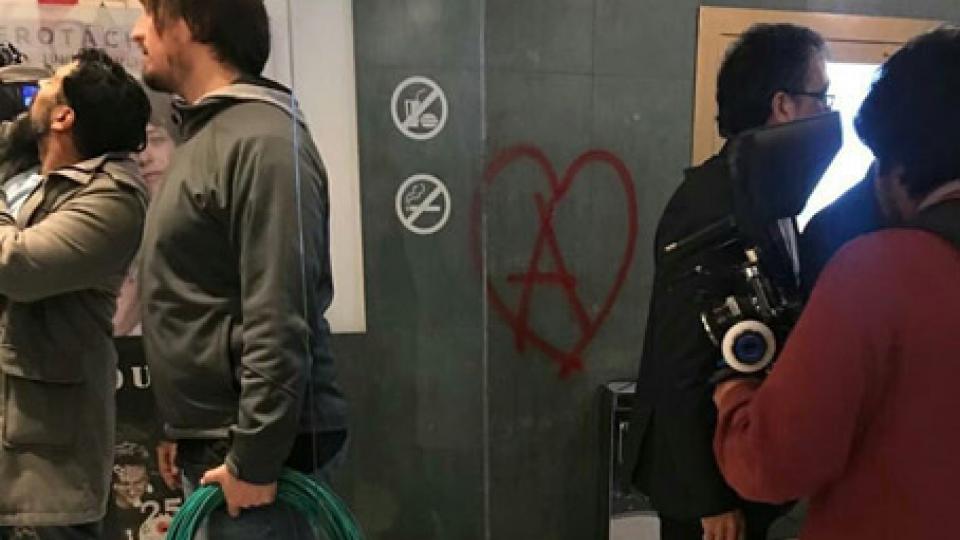 El atentado ocurrido anoche en la sala donde se estrenó del documental “El camino de Santiago Maldonado” sigue generando sospechas. En el lugar se encontraron confusos panfletos que reivindicaban la figura del artesano hallado muerto 78 días después de su desaparición y también pintadas anarquistas que no condicen con la tradicional simbología. Hubo seis detenidos en Plaza de Mayo pero aún no se estableció si alguno de ellos participó de esas agresiones. Mientras esto ocurría, el canal de noticias C5N, el único que transmitía los hechos en directo, recibió una amenaza de bomba.